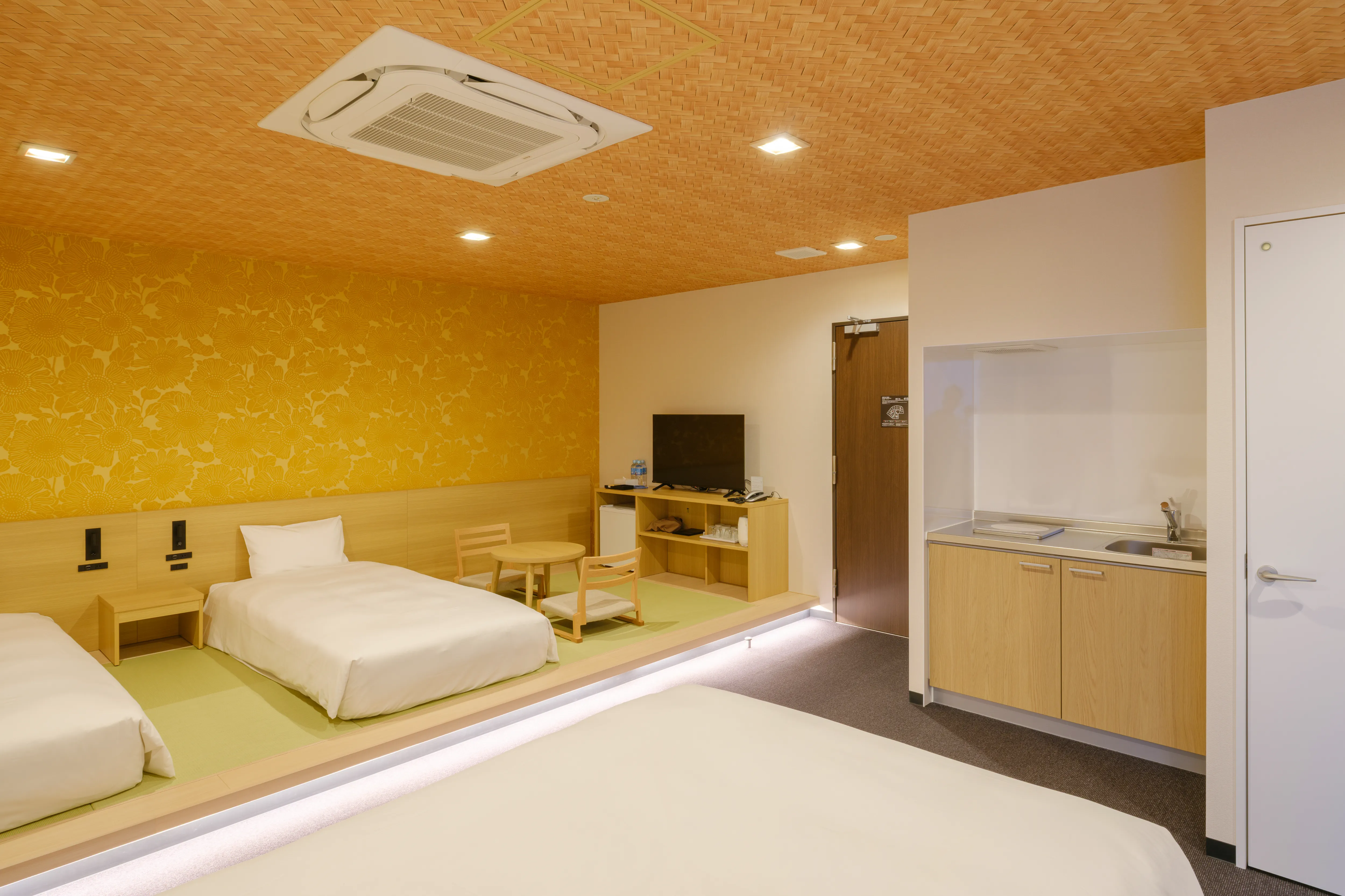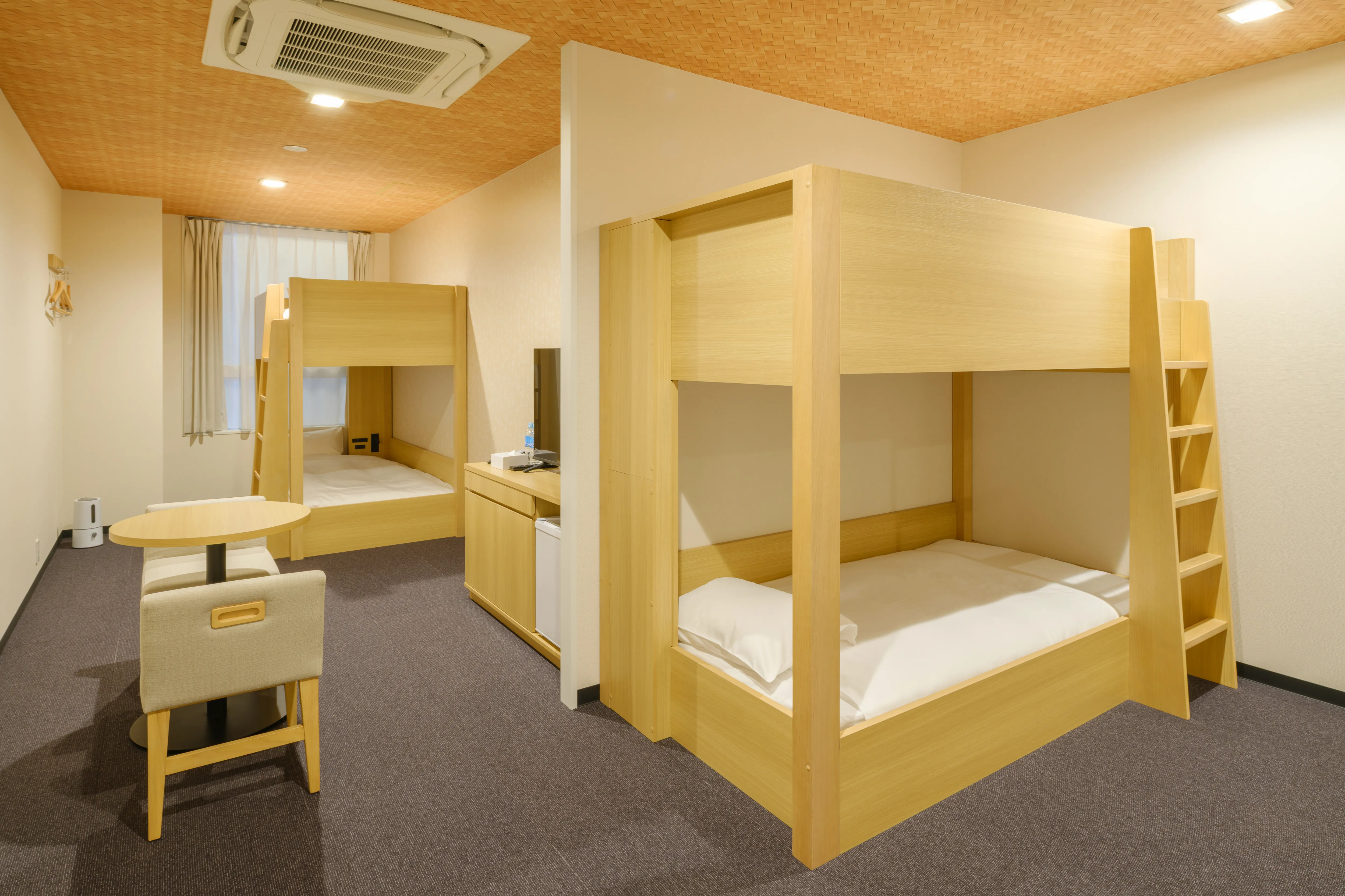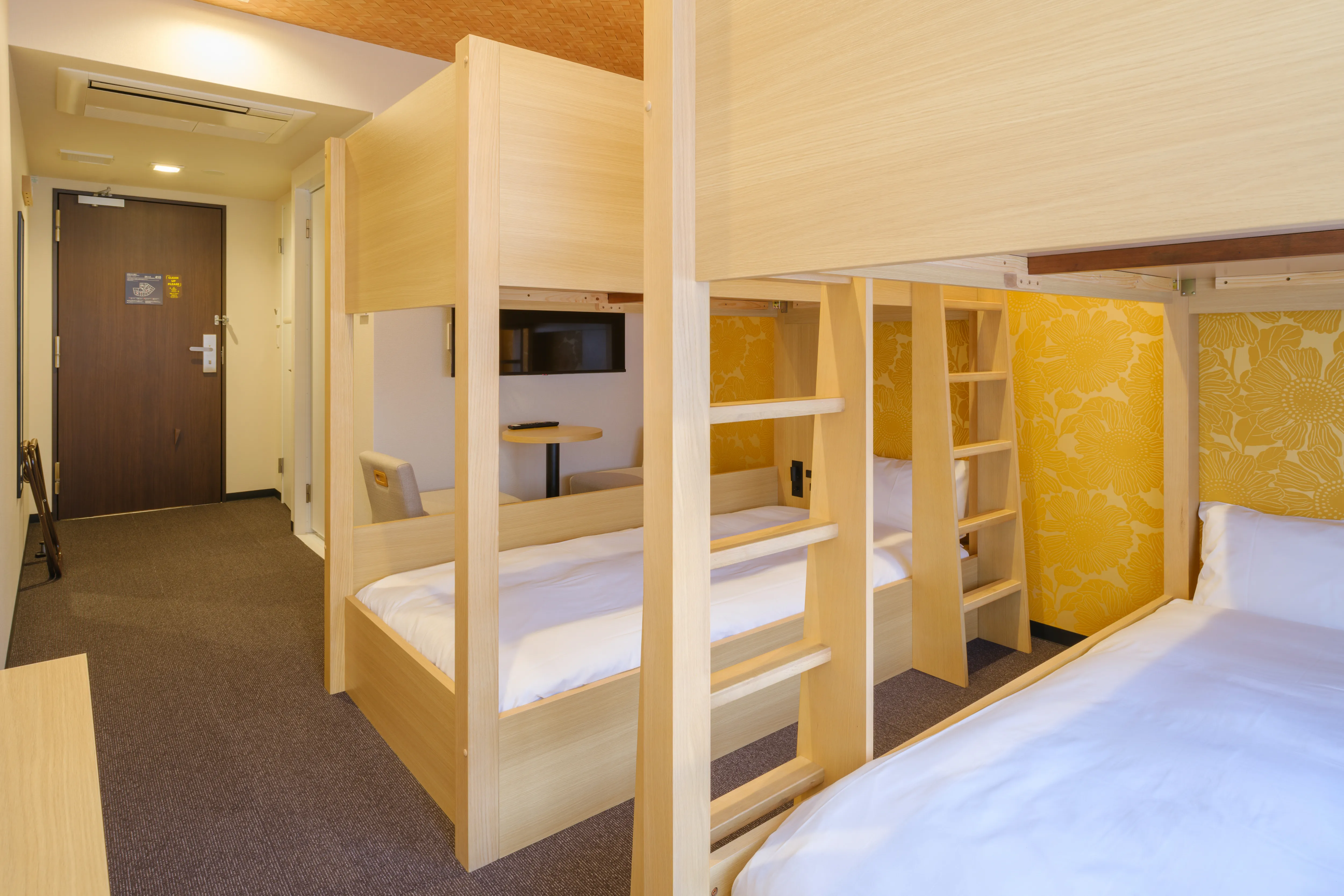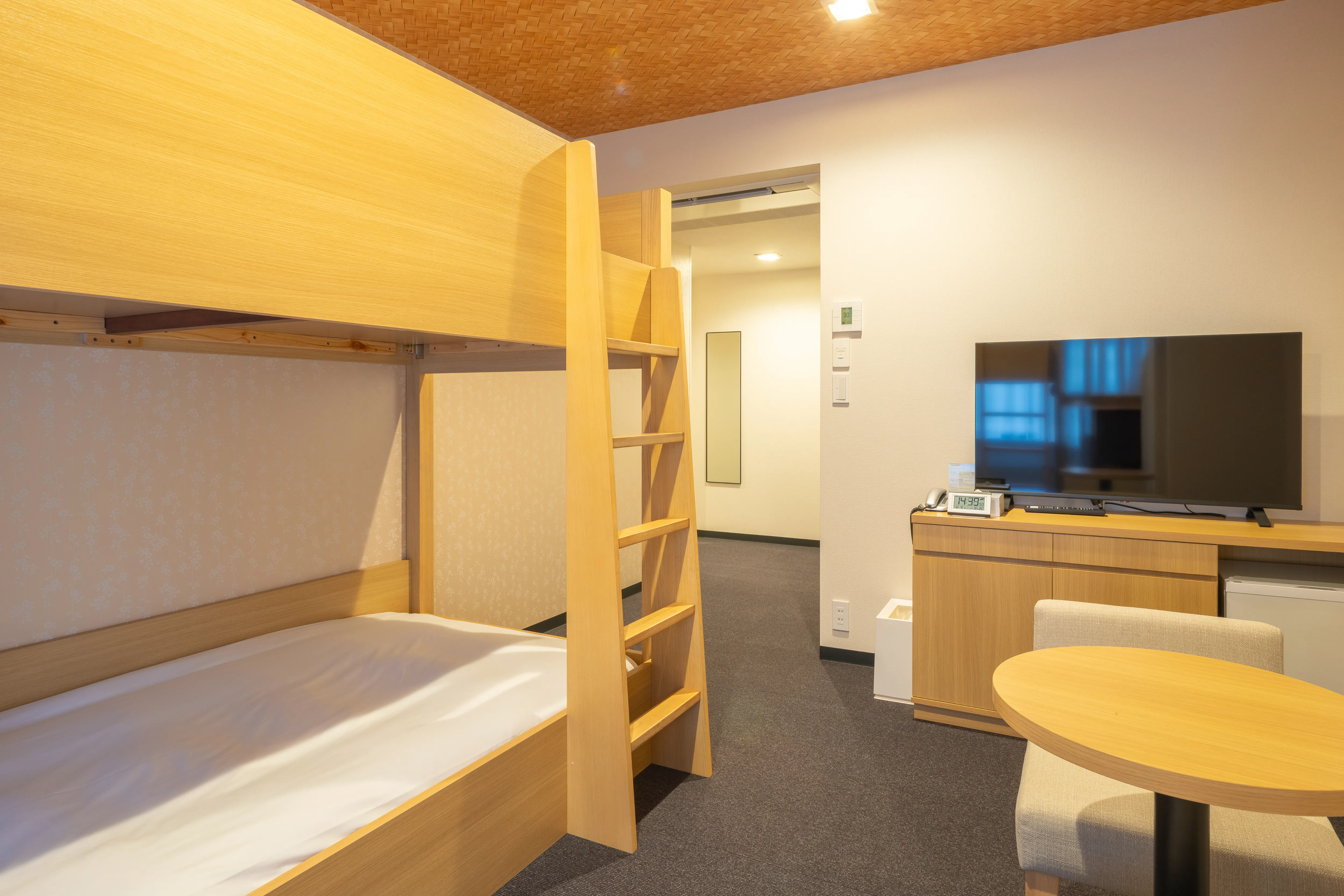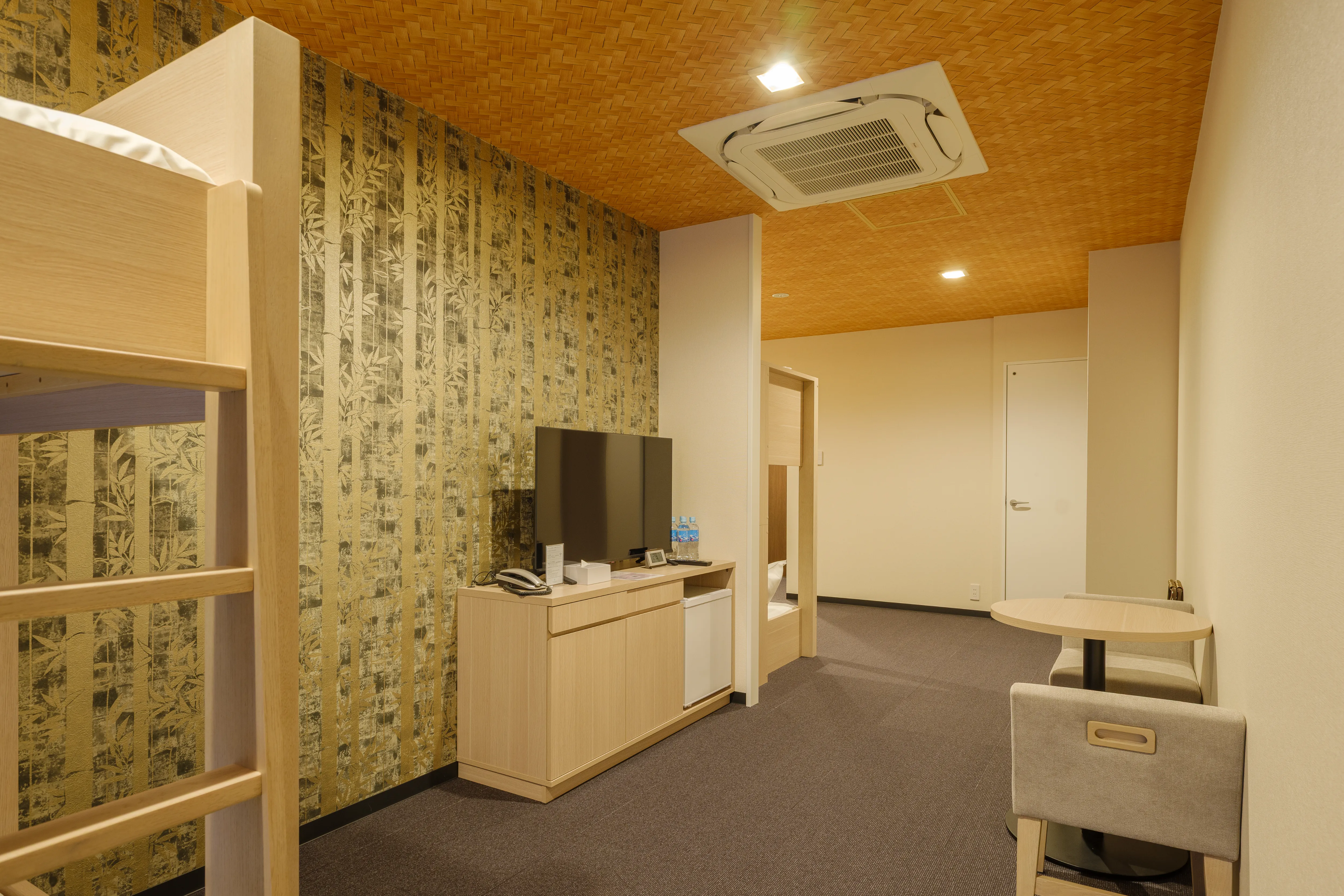 1〜2名向けのスタンダード洋室から、4名で利用できる二段ベッドルーム、ミニキッチン付きの和モダンタイプまで、幅広い滞在スタイルに対応。