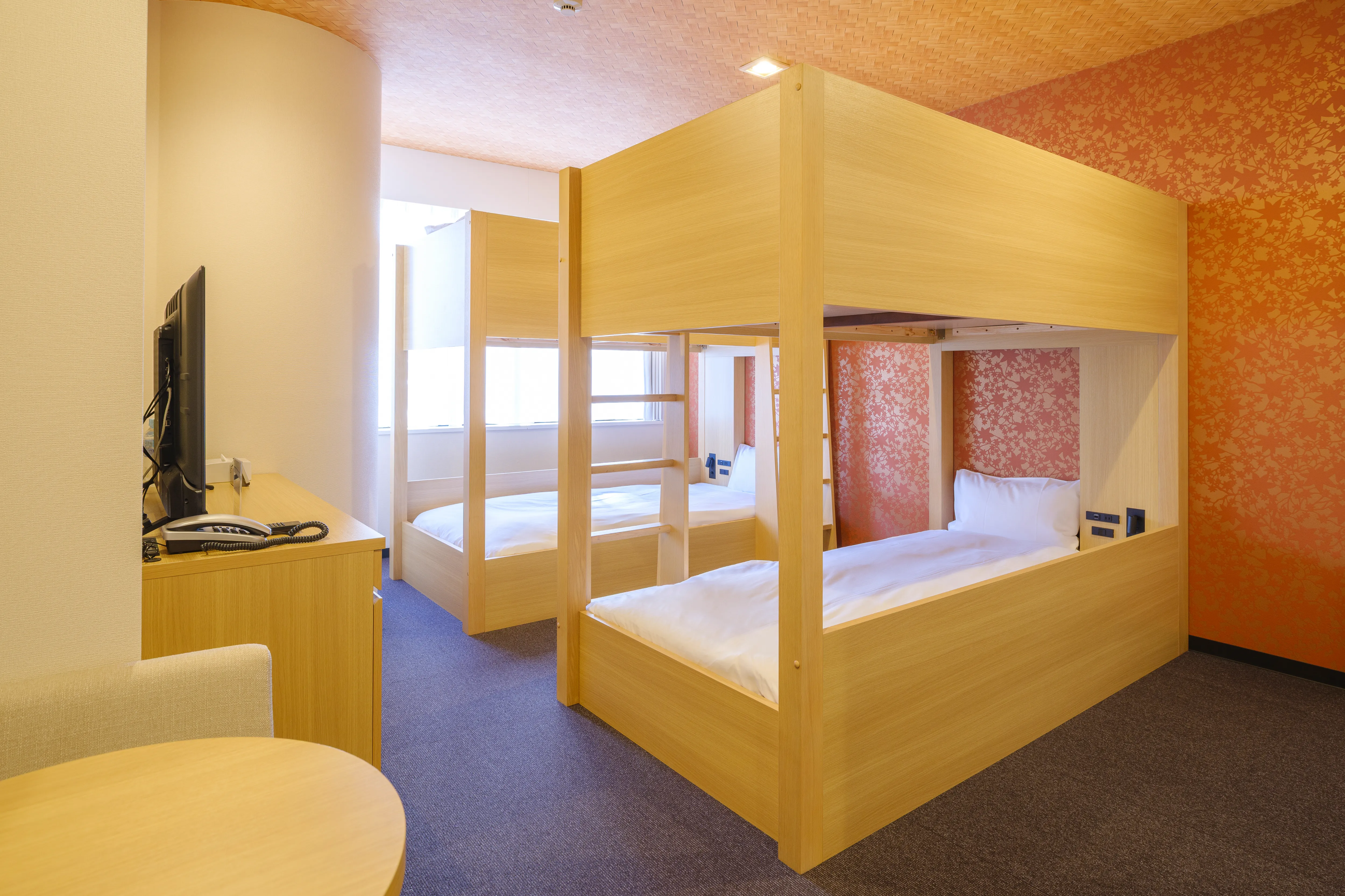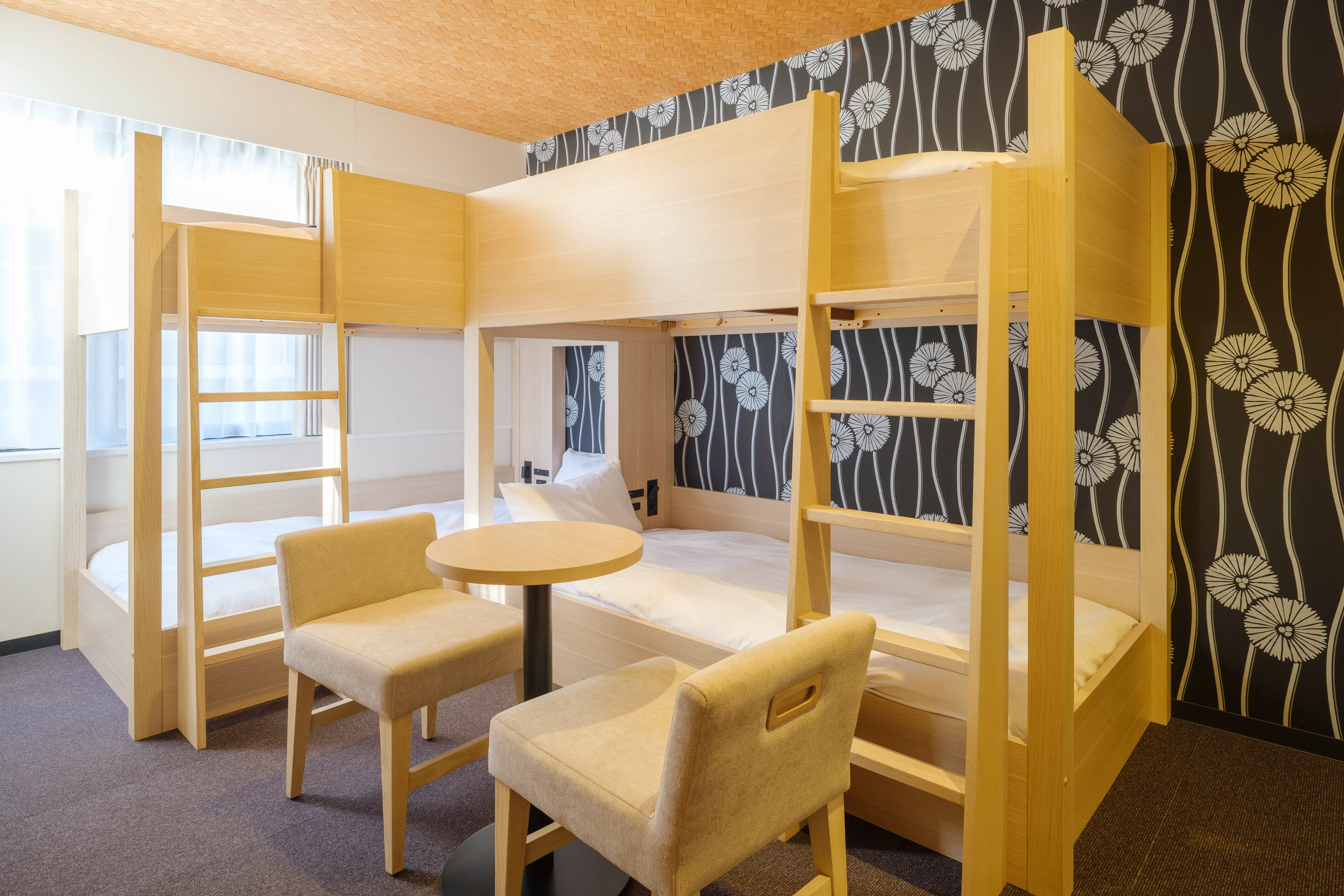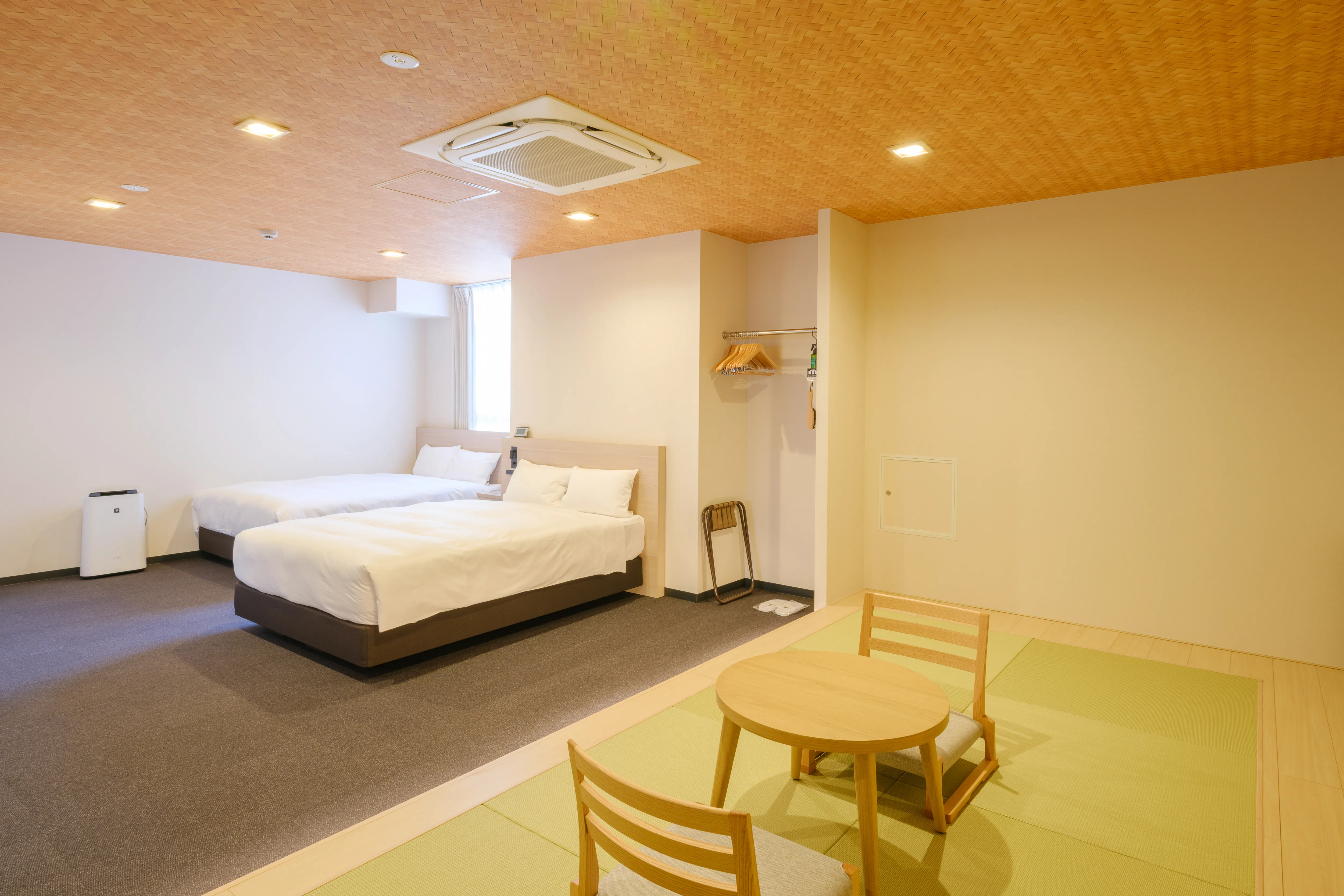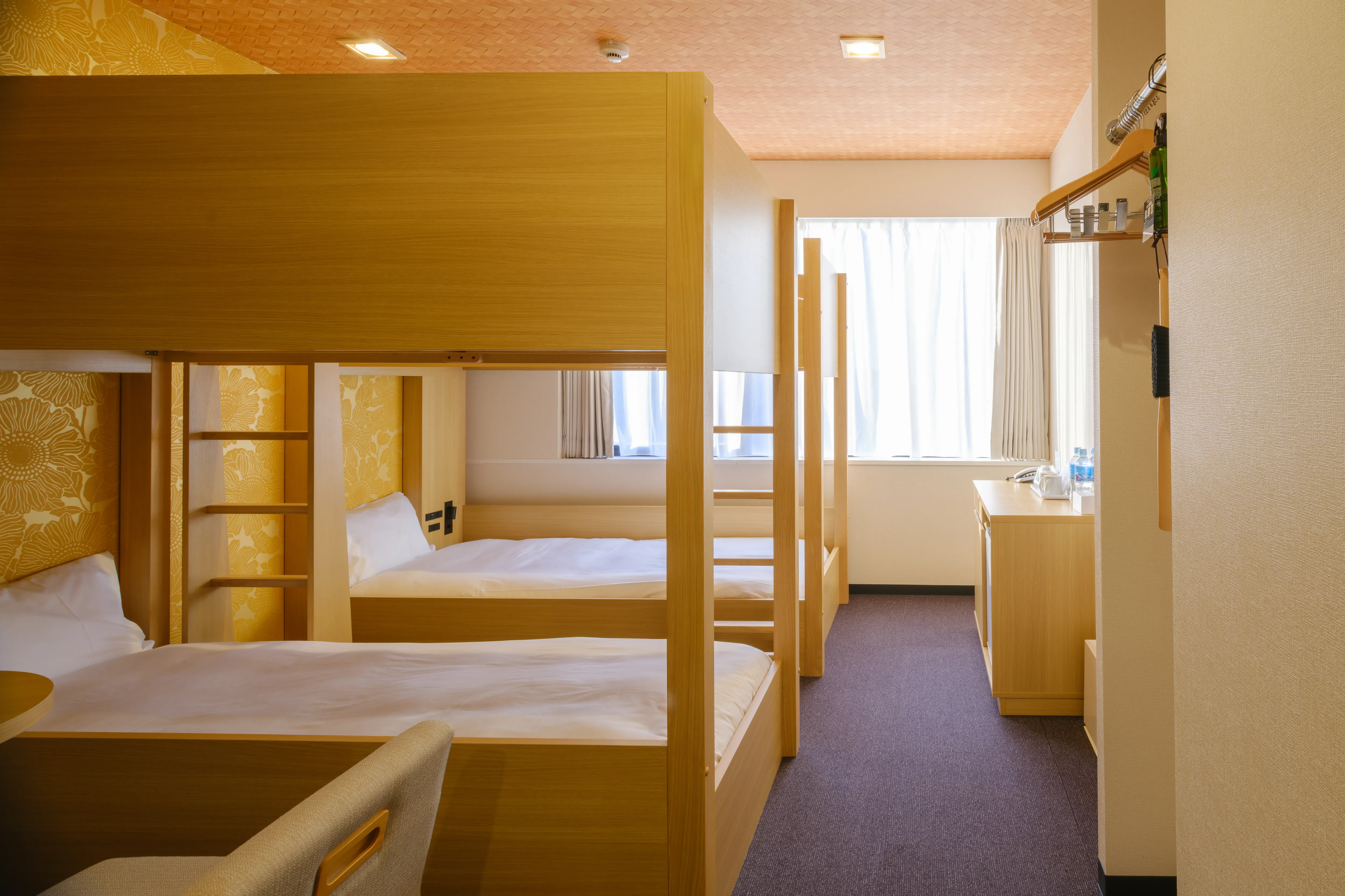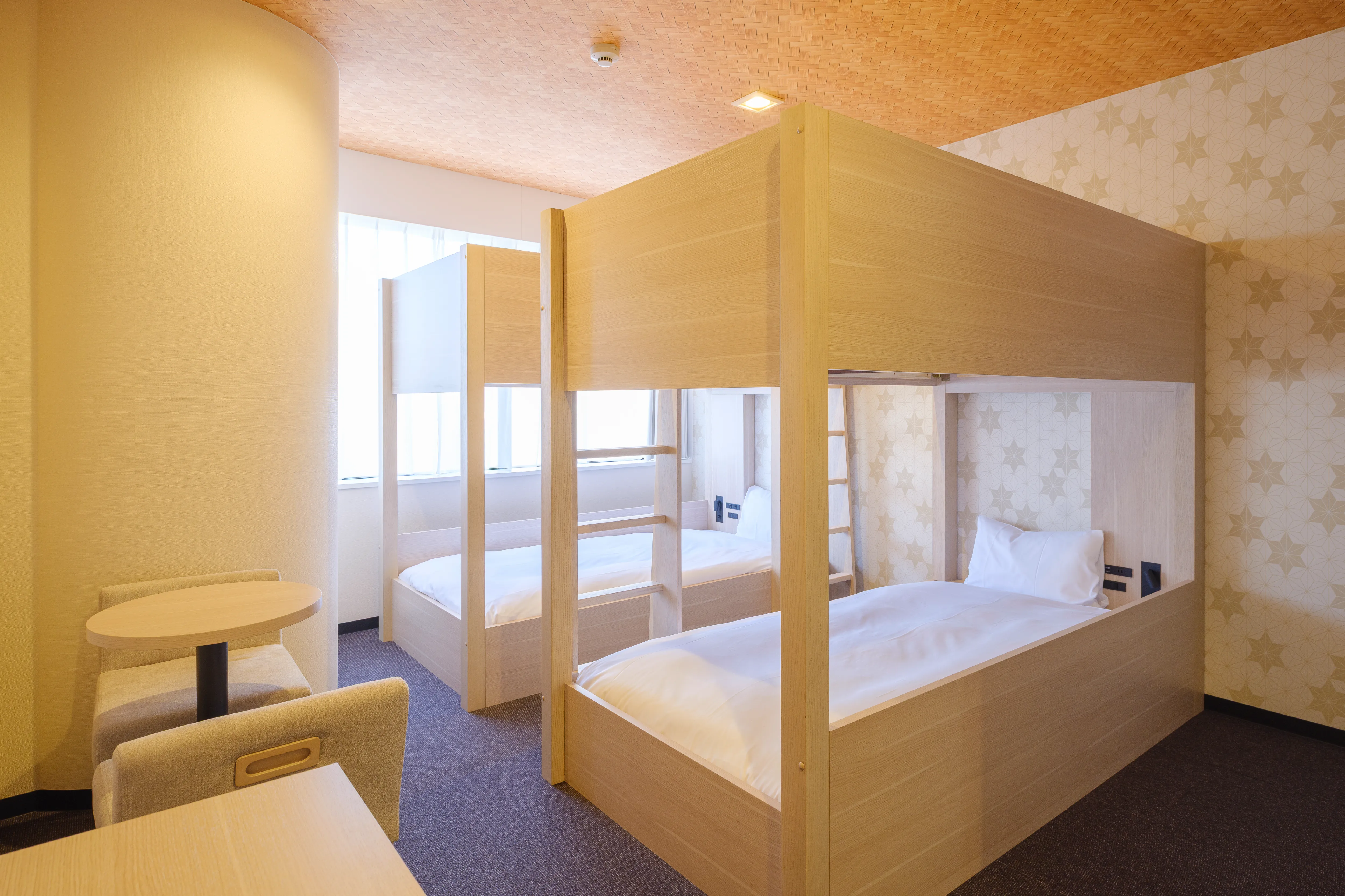 1〜2名向けのスタンダード洋室から、4名で利用できる二段ベッドルーム、ミニキッチン付きの和モダンタイプまで、幅広い滞在スタイルに対応。